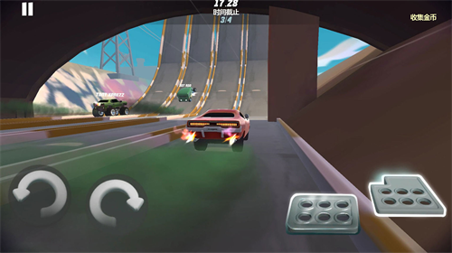 3、地形破坏机制:特定赛道可通过撞击障碍开辟捷径,但需承担车体受损风险