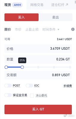 3、在订单区域选择买卖方向后,交易者可根据需求选择限价或市价模式。限价单需要手动输入目标价位与交易数量(支持按账户余额百分比快捷设置),市价单则按最优市场价即时成交。