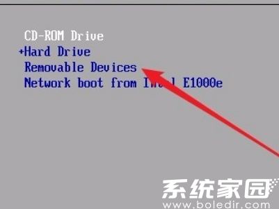 3、选定当前首选项设备,持续按压方向键下移键直至选中Removable Devices选项。某些版本BIOS支持直接拖拽调整,可尝试使用+/-键进行优先级调节。