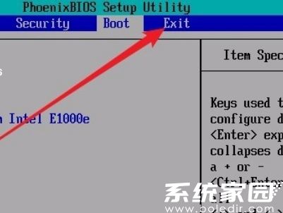 6、使用右方向键切换至Exit功能标签,此步骤需确保所有参数修改已完成。部分主板版本可能在此页面显示配置变更摘要,请仔细核对启动顺序。