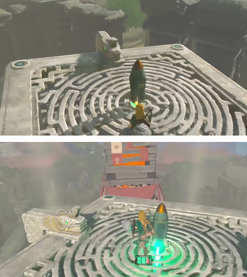 3、上层操作环节需要精准操控。利用究极手将火箭模块调整为垂直状态,确保底部喷口与石板凹槽完全契合。使用钝器敲击时注意控制力度,建议使用木质武器进行中等力度击打,避免破坏装置结构。