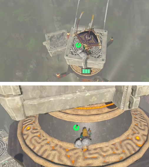 4、飞行轨迹控制是核心难点。当石板抬升高度超过鸟望台尖顶约三个身位时,立即开启滑翔伞进行俯冲。下落过程中按住ZL键调整视角,确保角色能准确降落在石板底部边缘区域。