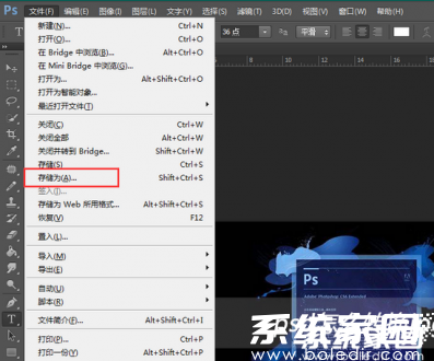 4、展开文件菜单的下拉选项列表,滑动至"存储为"二级菜单项。此功能区别于常规保存命令,可保留原始PSD文件同时生成新格式副本。