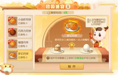 往期中秋特色「月宫盛宴」玩法中,玩家可通过收集不同食材组合,制作具备特殊效果的节日美食: