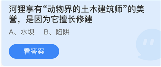 2、第二题考验生态认知:河狸因何被誉为自然界的基建大师?